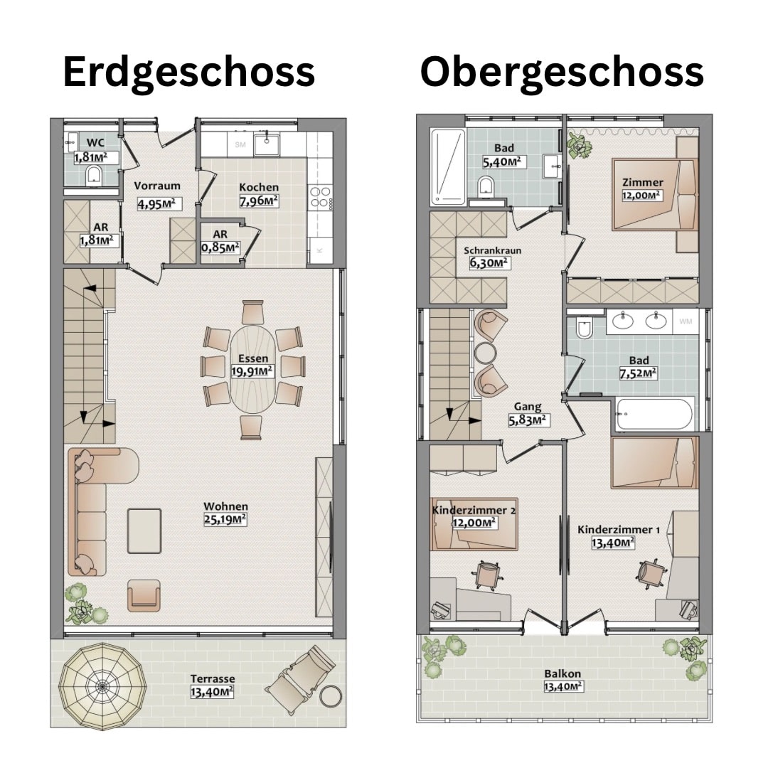 Terrasse (13,40 m²): Ein perfekter Ort für den Morgenkaffee oder ein Abendessen im Freien.