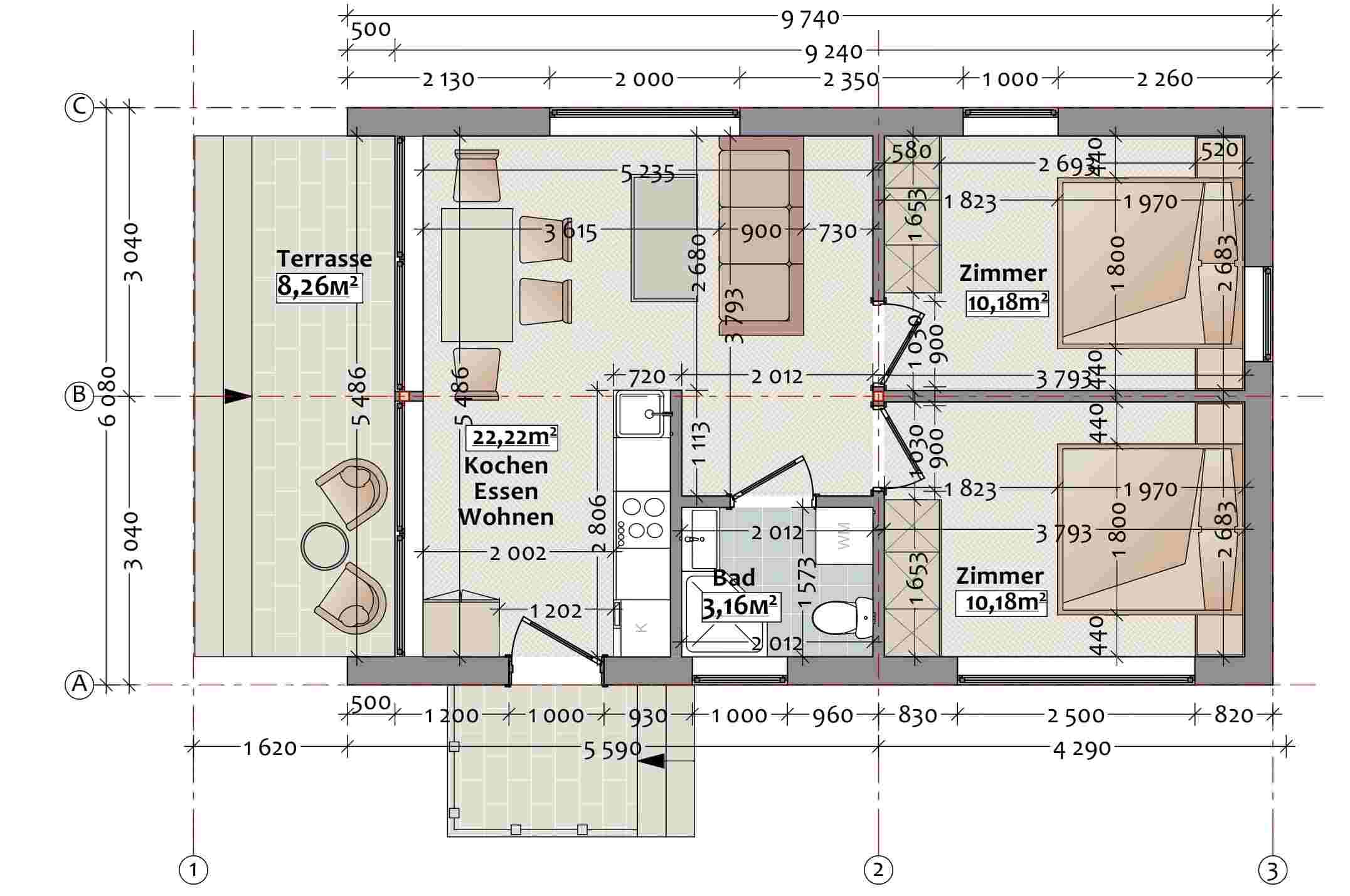 - Zwei Schlafzimmer;