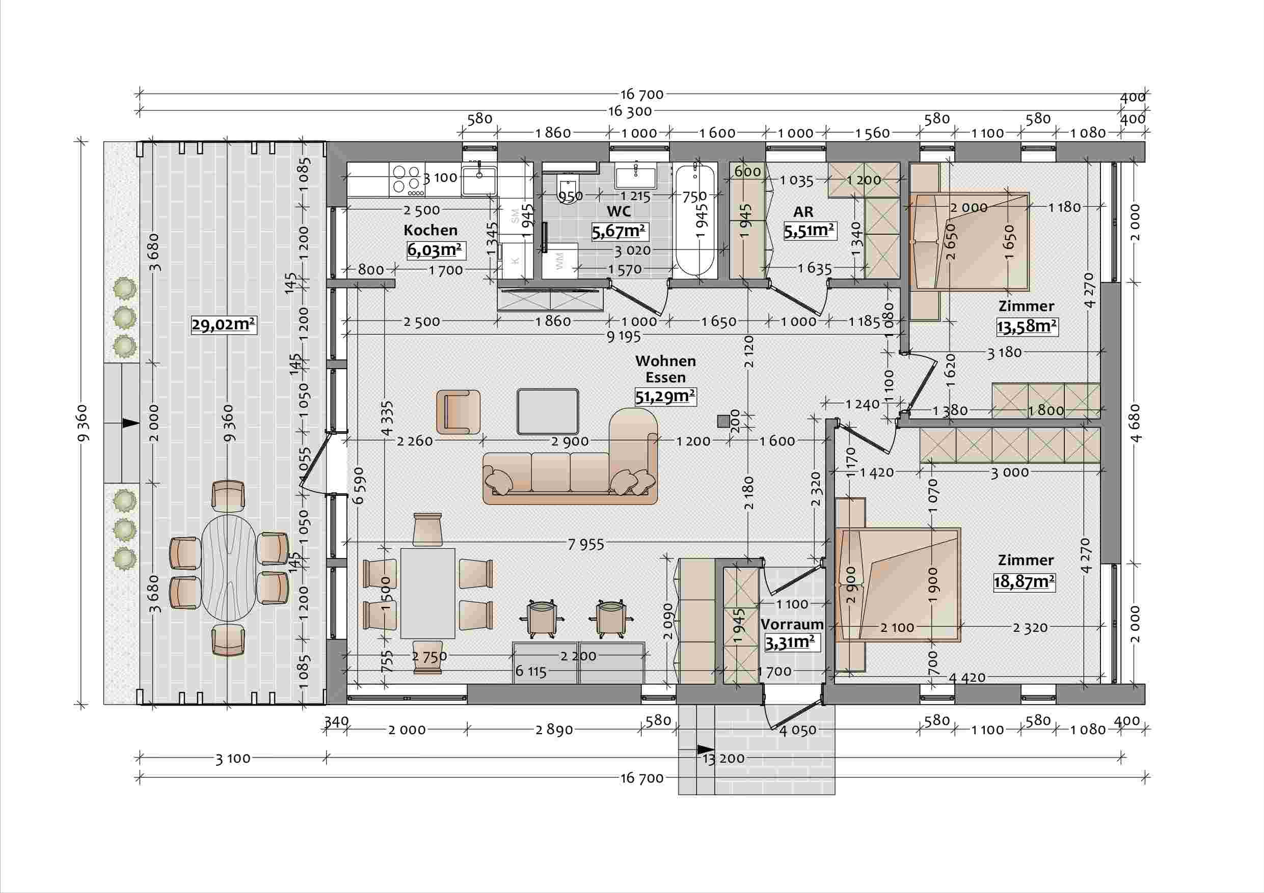 - Flexible Konstruktion: Möglichkeit, den Grundriss individuell anzupassen.