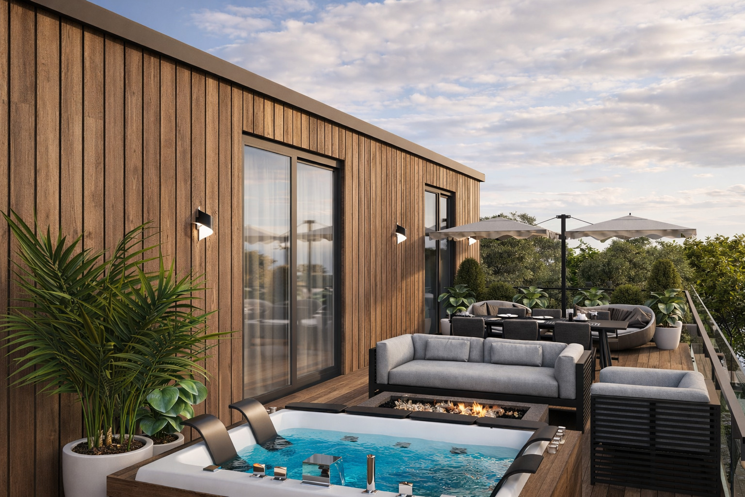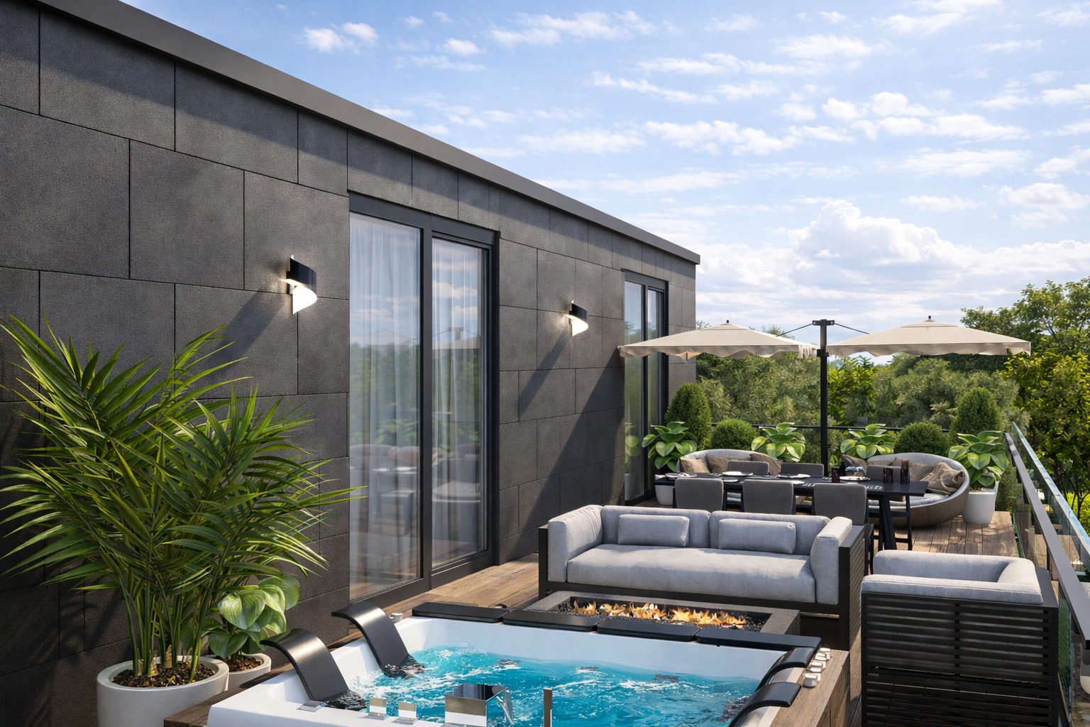 - Eine großzügige Dachterrasse, ideal für Erholung, Treffen mit Freunden oder Momente der Privatsphäre.