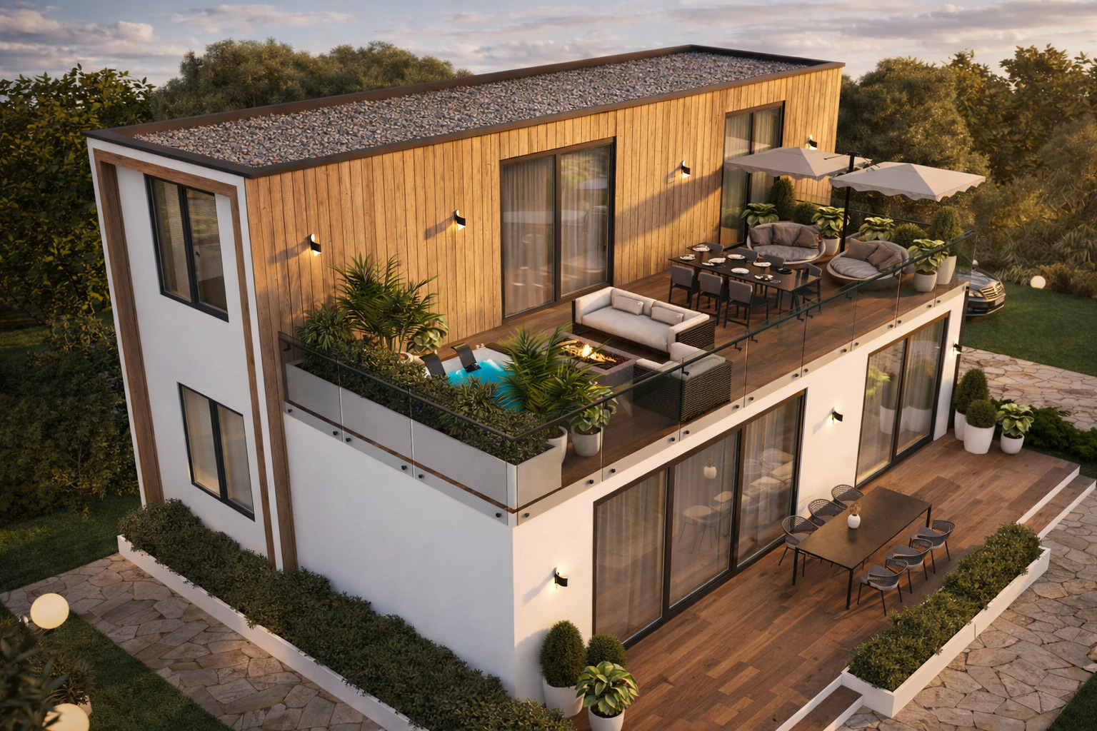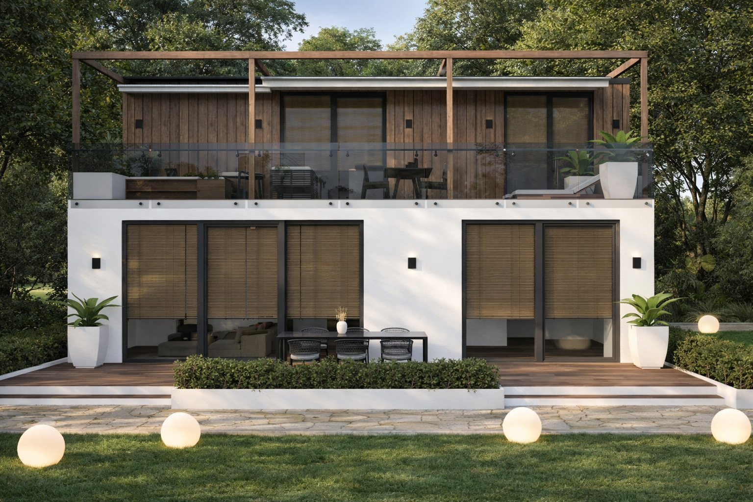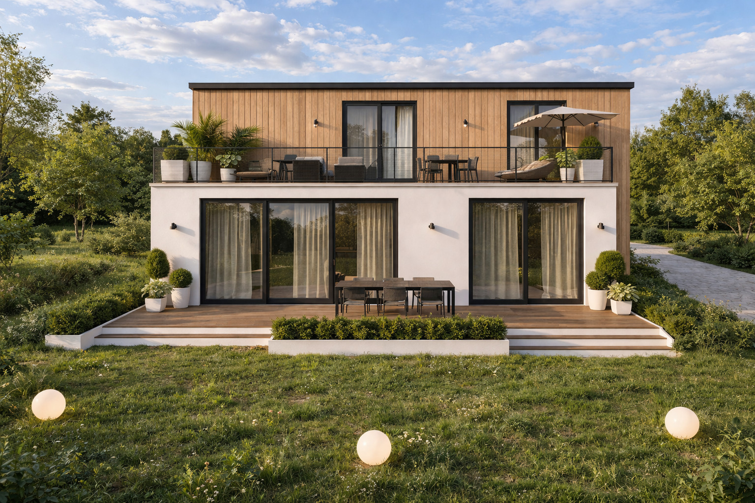 Scala 121 ist ein Haus, das für ein Leben in Harmonie mit der Natur geschaffen wurde. Es kombiniert stilvolles Design, Funktionalität und Komfort und ist die perfekte Wahl für alle, die Qualität und moderne Architektur schätzen.