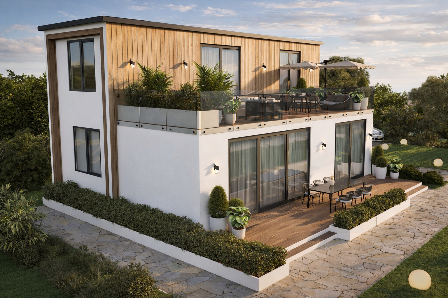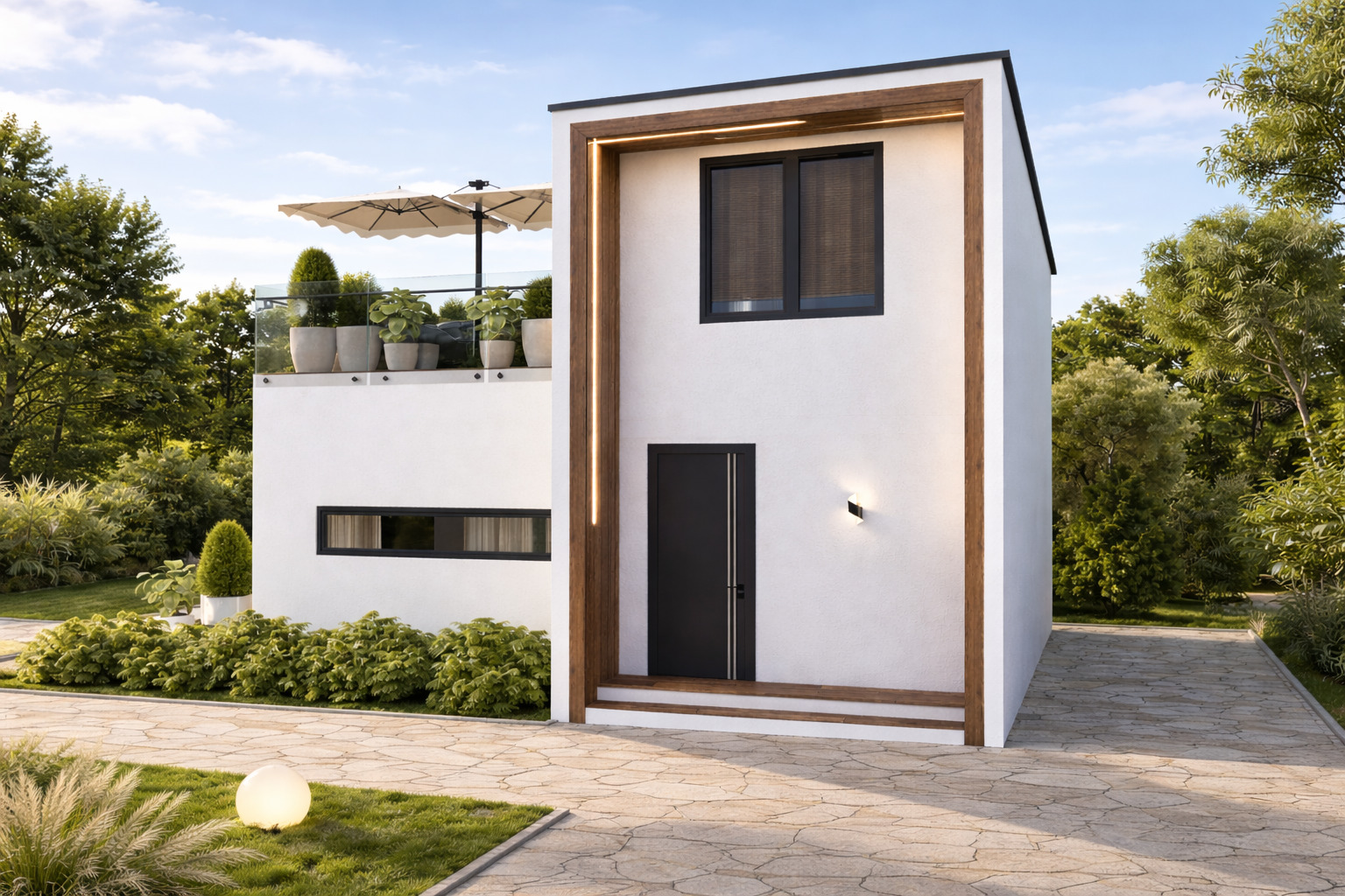 - Kompakte Bauweise: Dank der durchdachten Architektur passt sich das Haus selbst an kleine Grundstücke optimal an.