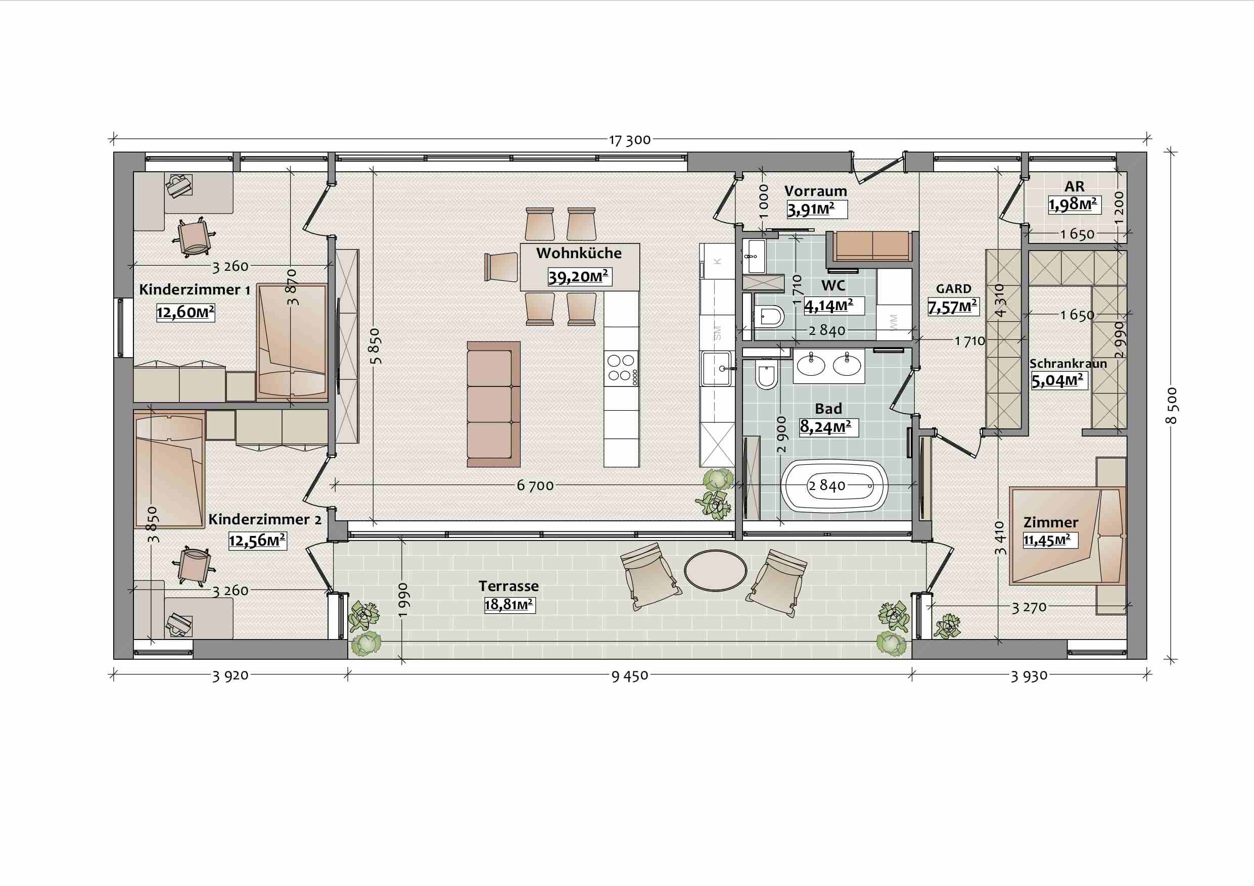 - Das großzügige Wohn- und Esszimmer mit einer Fläche von 39 m² und großen Fensterflächen zur grünen Oase schafft ein Gefühl von Behaglichkeit und Harmonie. Über die Hebe-Schiebetür gelangt man in den Garten, wo die überdachte Terrasse vor Sonne und Wetter schützt und ein ganzjähriges Naturerlebnis ermöglicht.