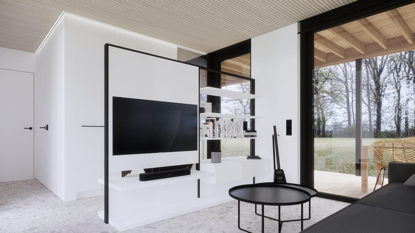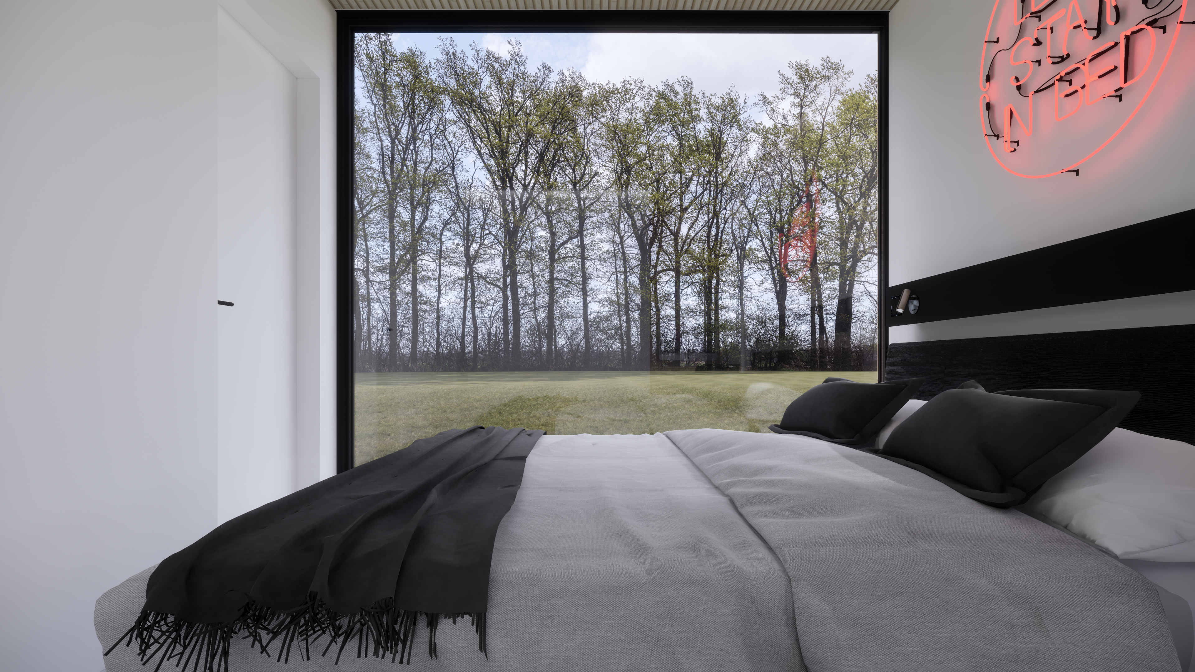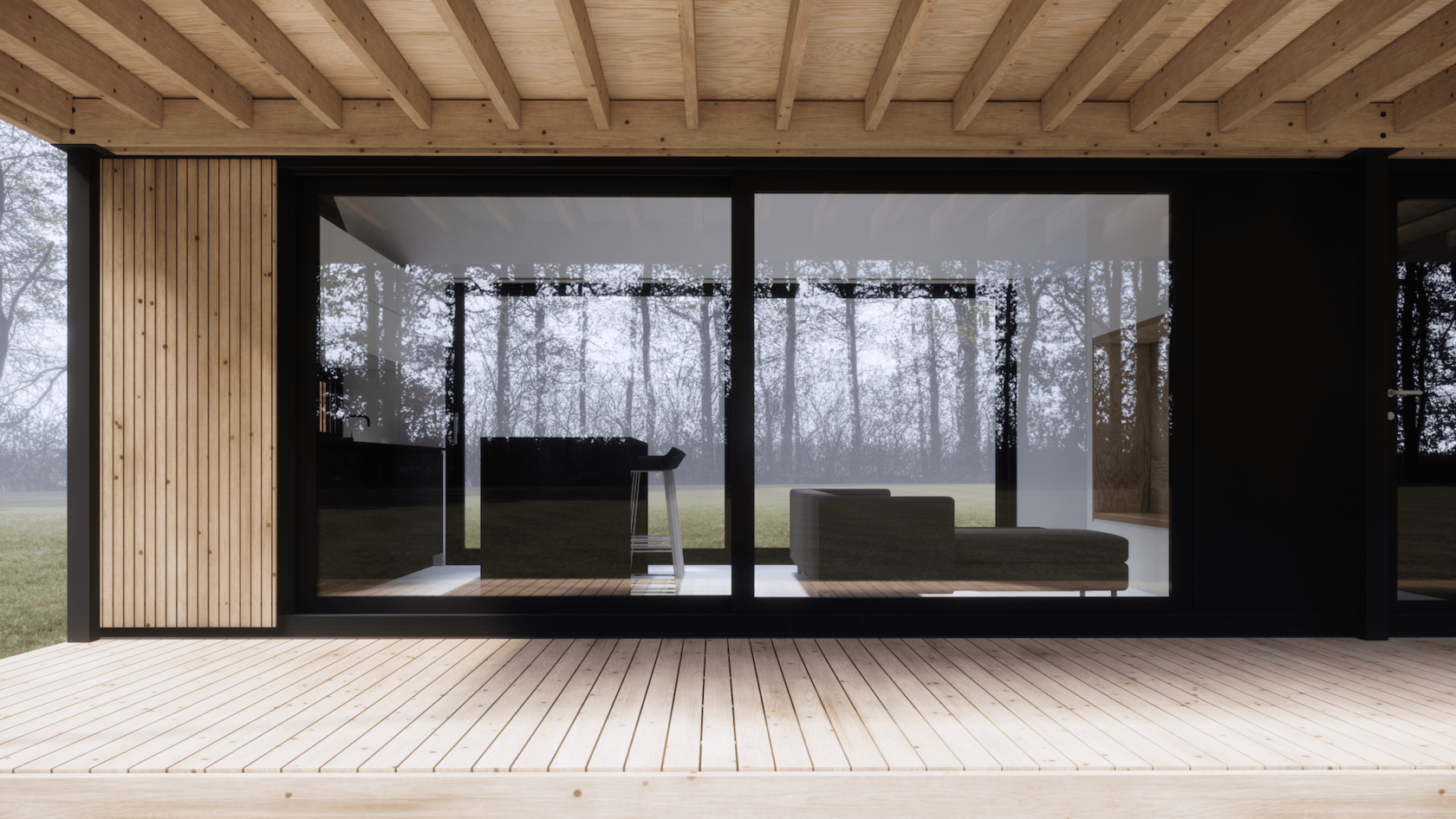 Dieses Modell ist ideal für den dauerhaften Aufenthalt oder einen ruhigen Familienurlaub in der Natur, da seine vollständig verglasten Wände einen atemberaubenden Blick auf die Umgebung bieten.