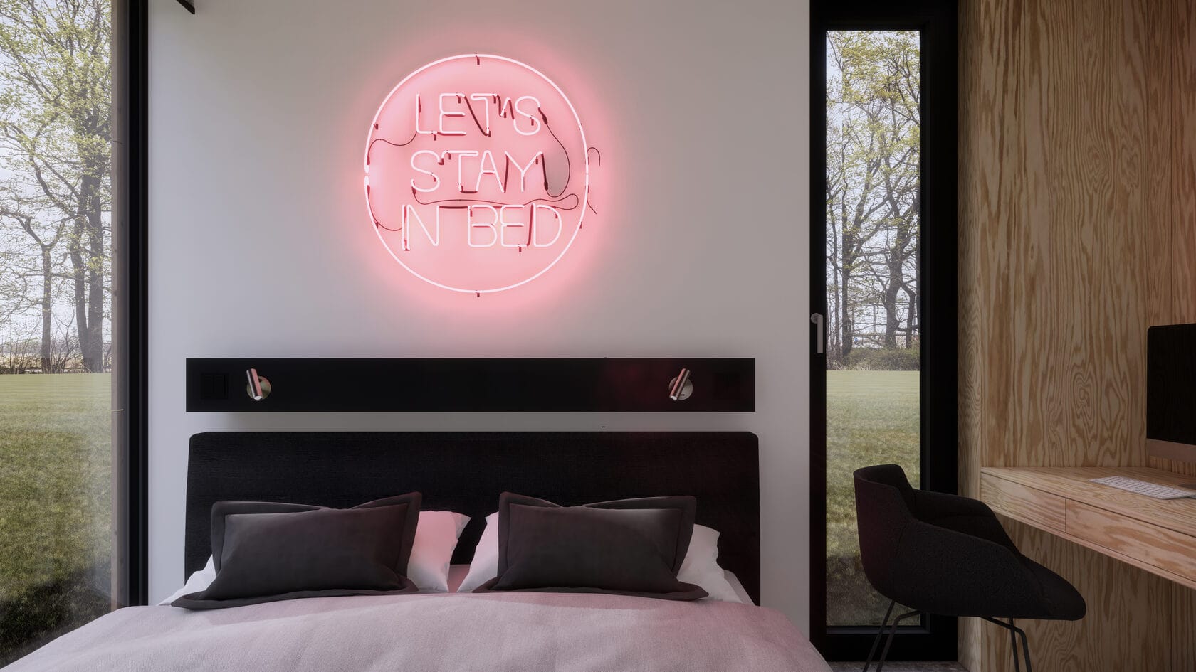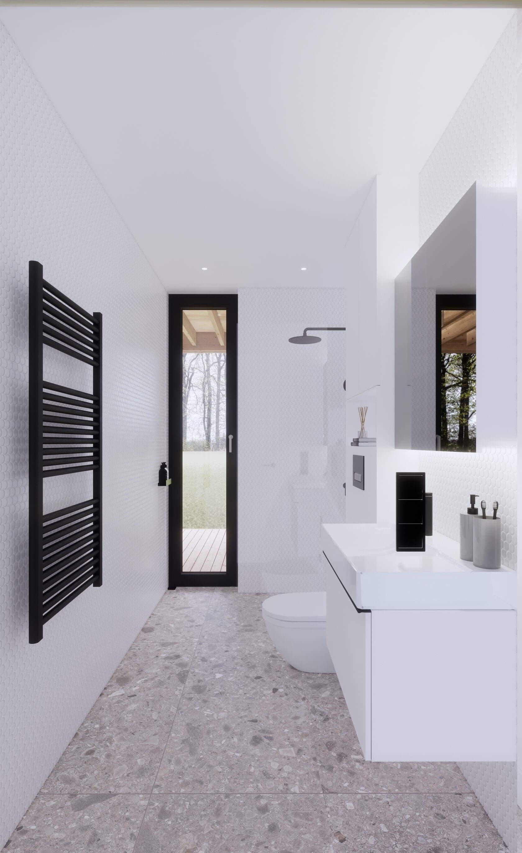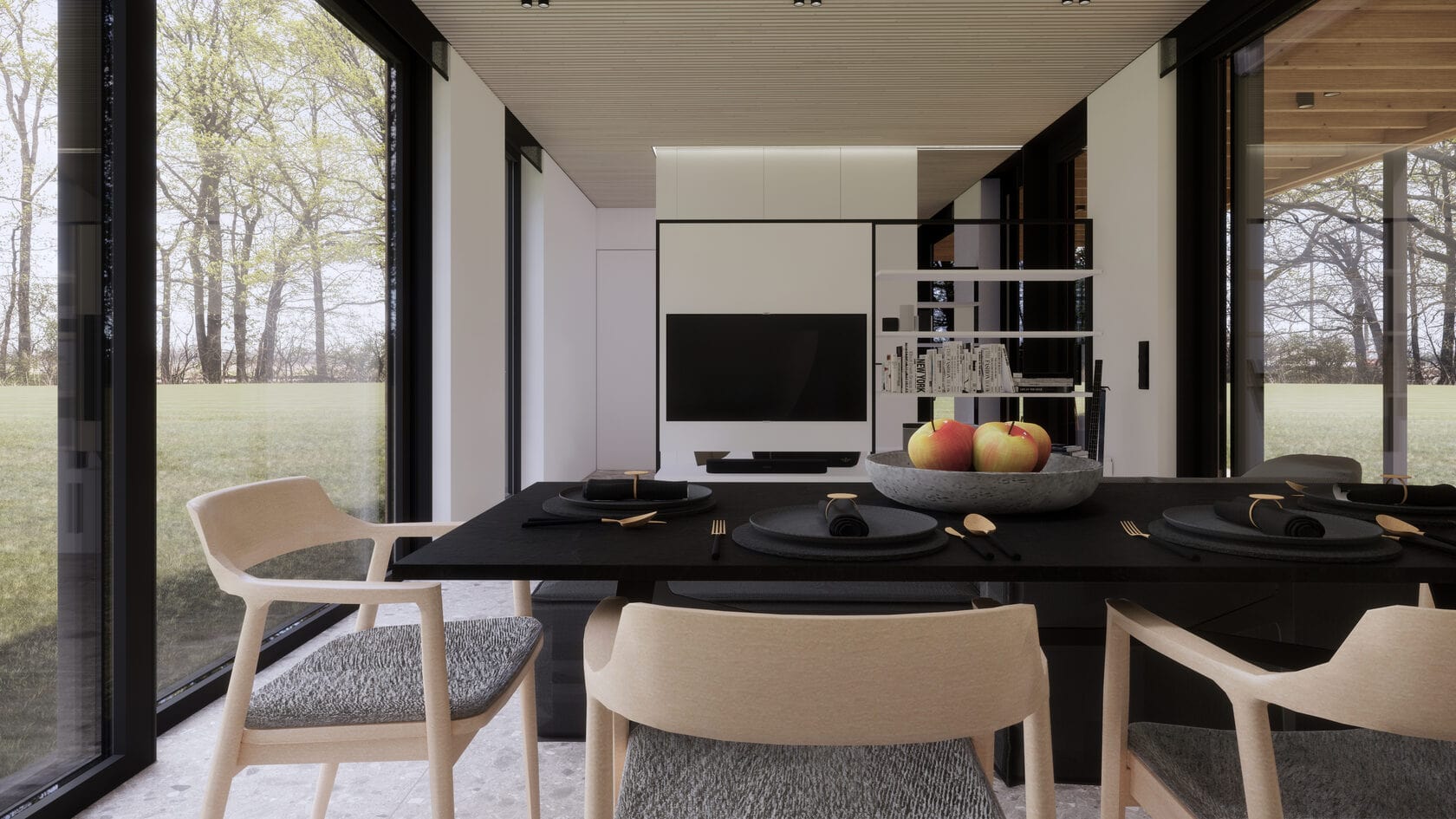 Dieses Modell ist ideal für den dauerhaften Aufenthalt oder einen ruhigen Familienurlaub in der Natur, da seine vollständig verglasten Wände einen atemberaubenden Blick auf die Umgebung bieten.