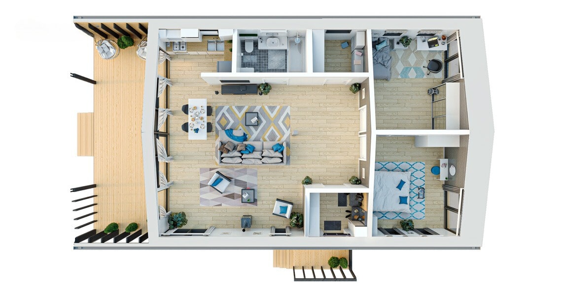 - Flexible Konstruktion: Möglichkeit, den Grundriss individuell anzupassen.