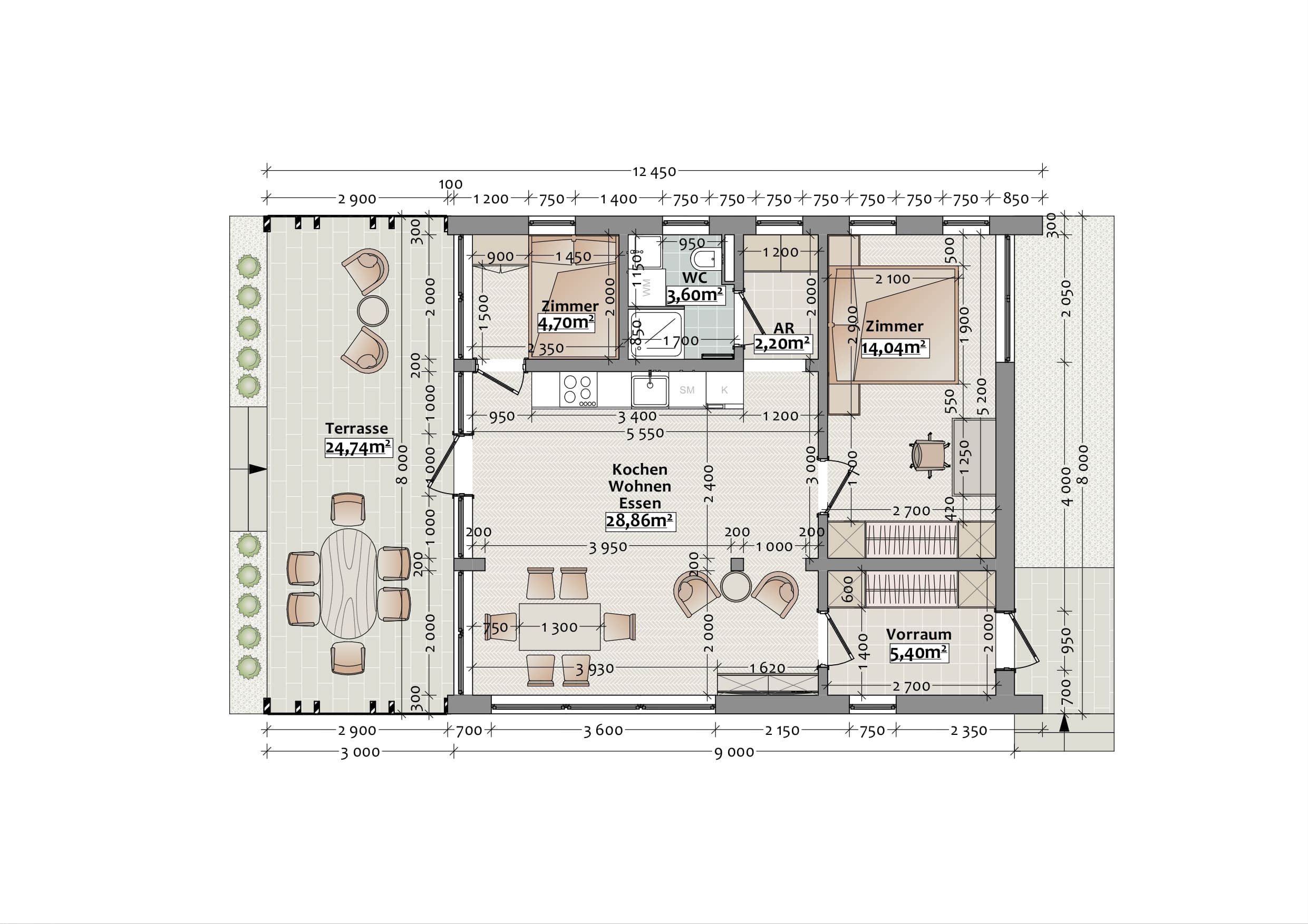 - Flexibilität: Der Grundriss kann an die individuellen Bedürfnisse angepasst werden.