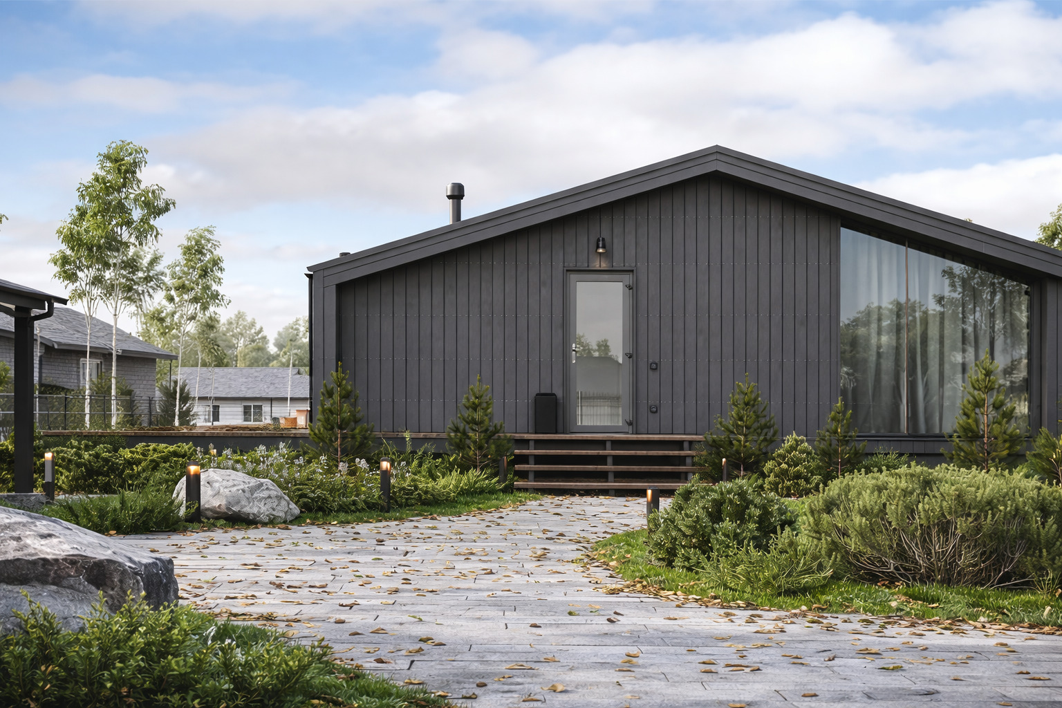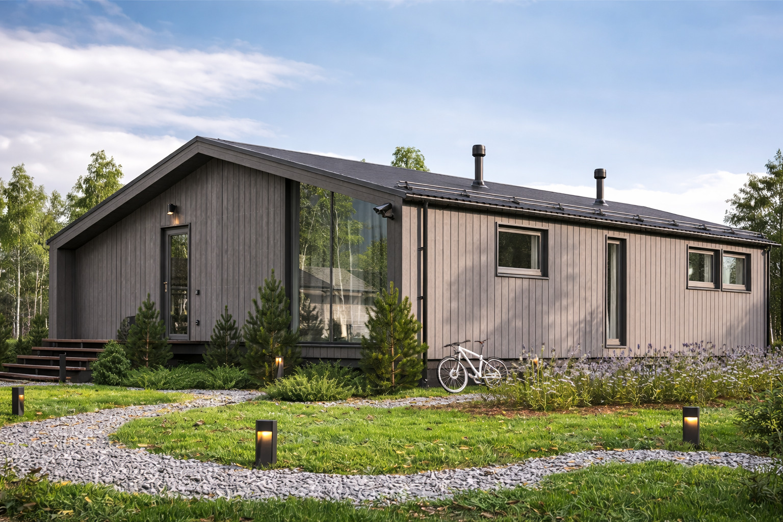 Das Haus "Nordic 78" ist ein modernes Fertighaus, das durch seine kompakte Bauweise, hochwertige Materialien und funktionales Design überzeugt. Es ist die ideale Wahl für all jene, die ein stilvolles, umweltfreundliches und preisbewusstes Zuhause suchen.