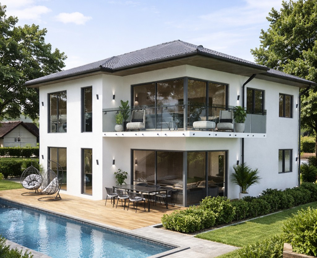 Eleganz und Langlebigkeit: Der Einsatz moderner Materialien und Technologien macht das Haus stilvoll und praktisch.